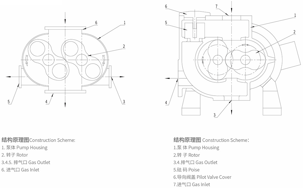 羅茨真空泵,由于采用數(shù)控加工中心加工,泵體與側(cè)蓋,側(cè)蓋與端蓋之間都采用“O”型圈密封,圓柱銷定位,零件互換性能好,維修方便,泵采用一個進氣口,三個排氣口的結(jié)構(gòu)設(shè)計,便于用戶安裝使用。羅茨泵不能單獨使用,只有串聯(lián)前級泵才能使用,可選擇螺桿泵、油封泵、液環(huán)泵作為前級泵,值得一提的是,當選用螺桿泵、液環(huán)泵作為前級泵時,特別適合抽除大量可凝性氣體的場合。